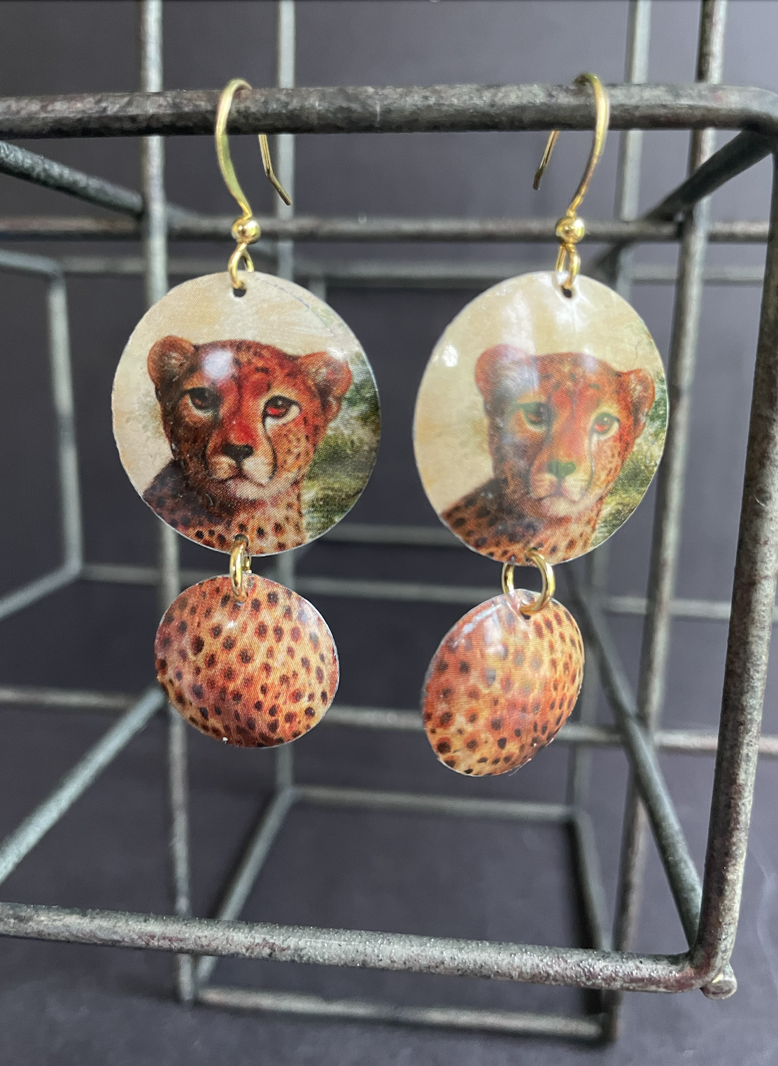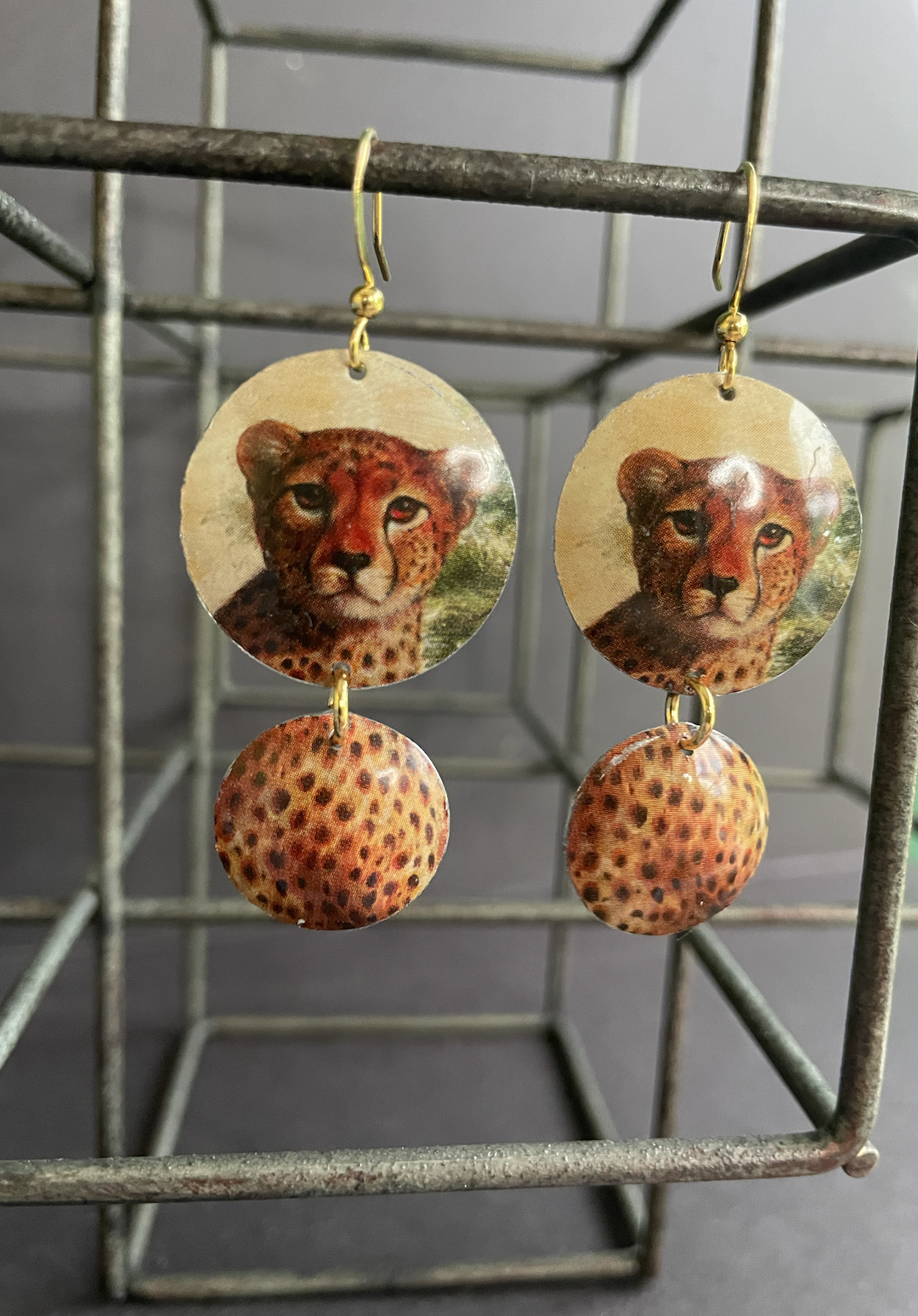 Care Instructions: As with any jewelry, the easier you treat it, the longer it will last. The double-sided pendants are not water proof. The tin earrings are water proof, although some of the older tins may rust as they have a higher iron content (I think this patina only adds to their charm).