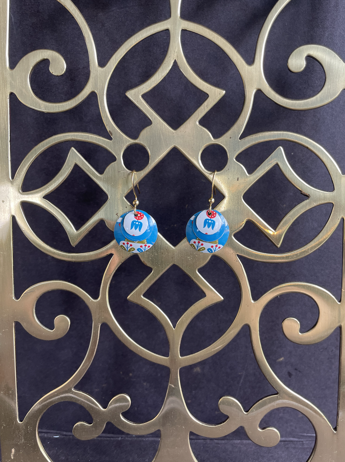 Care Instructions: As with any jewelry, the easier you treat it, the longer it will last. The double-sided pendants are not water proof. The tin earrings are water proof, although some of the older tins may rust as they have a higher iron content (I think this patina only adds to their charm).