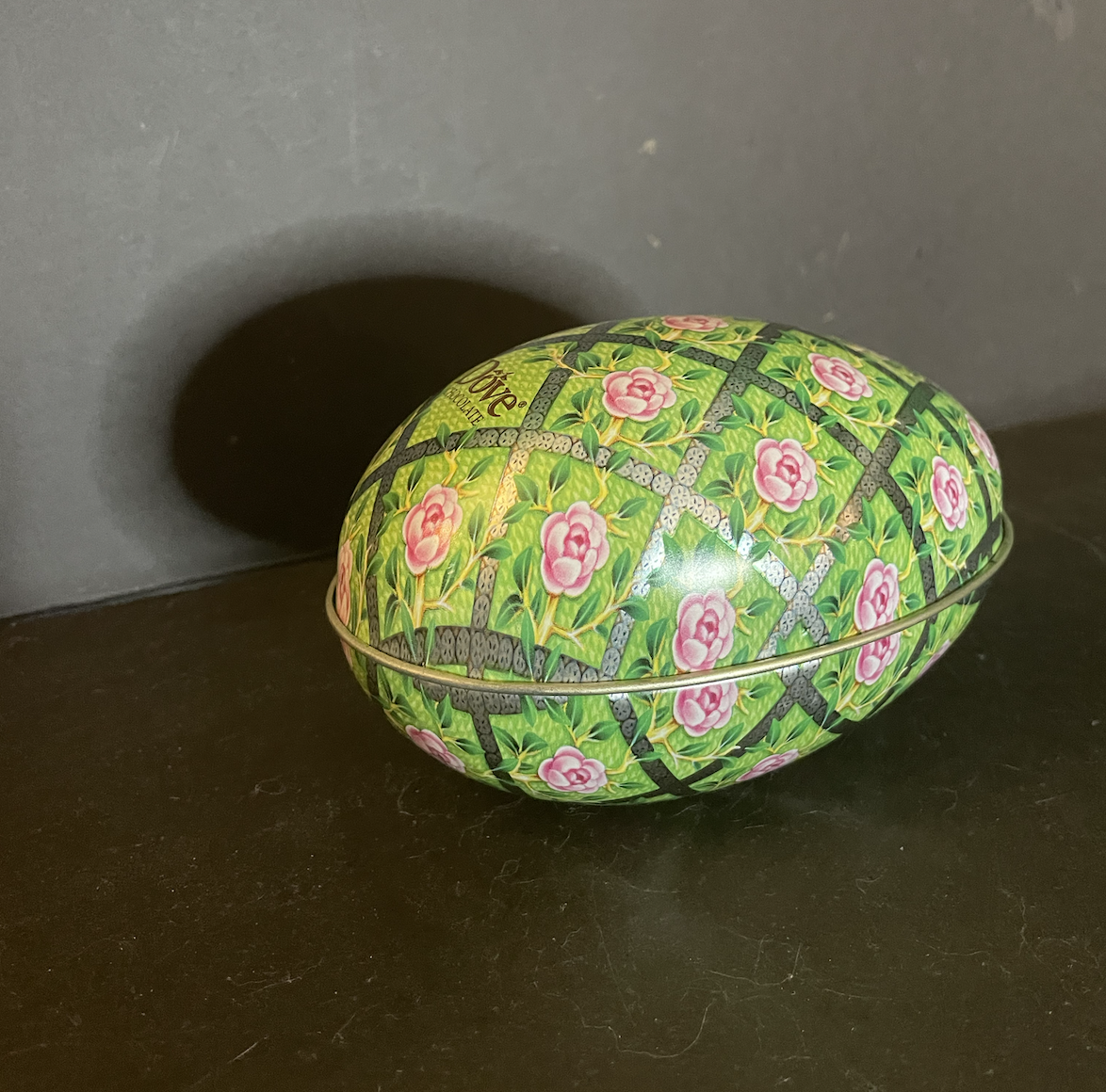 There once was an easter egg made out of tin. This tin. These are a portion of the designs on that tin.