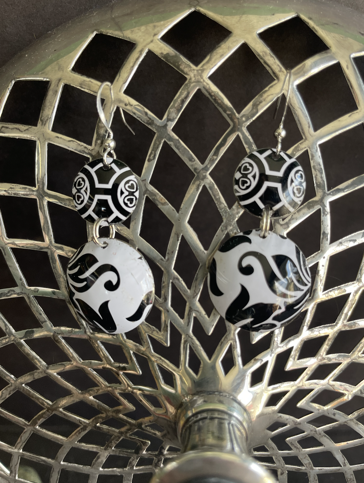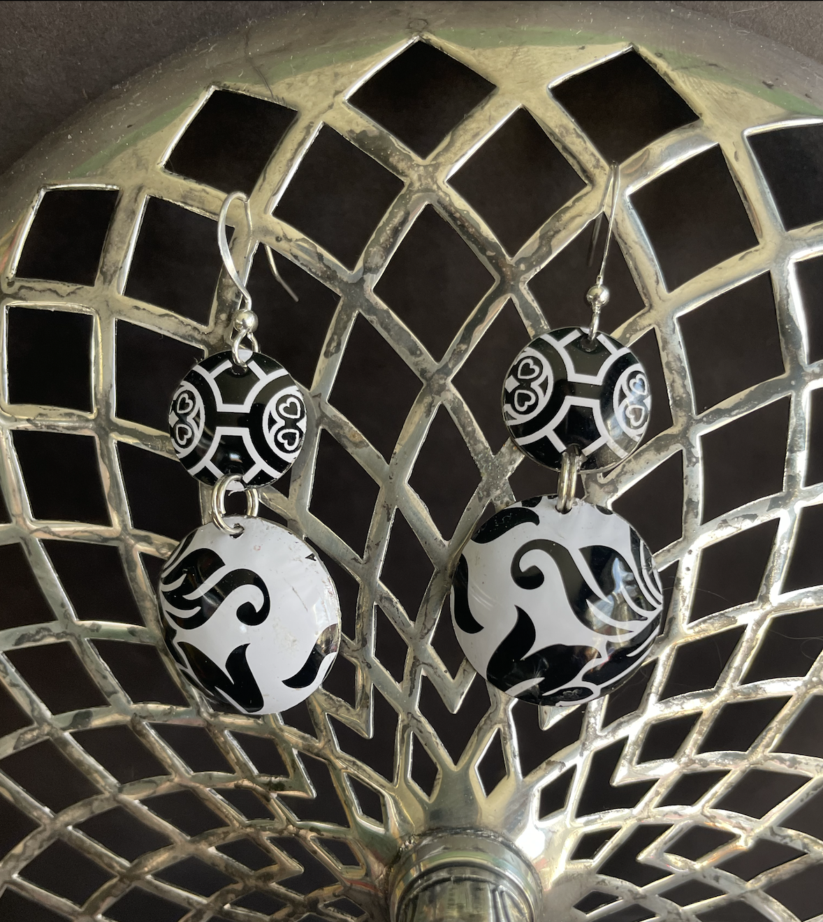 • Care Instructions: As with any jewelry, the easier you treat it, the longer it will last. The double-sided pendants are not water proof. The tin earrings are water proof, although some of the older tins may rust as they have a higher iron content (I think this patina only adds to their charm).