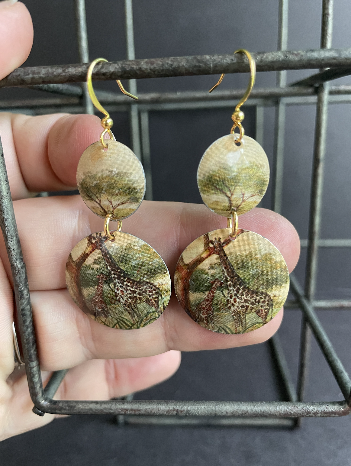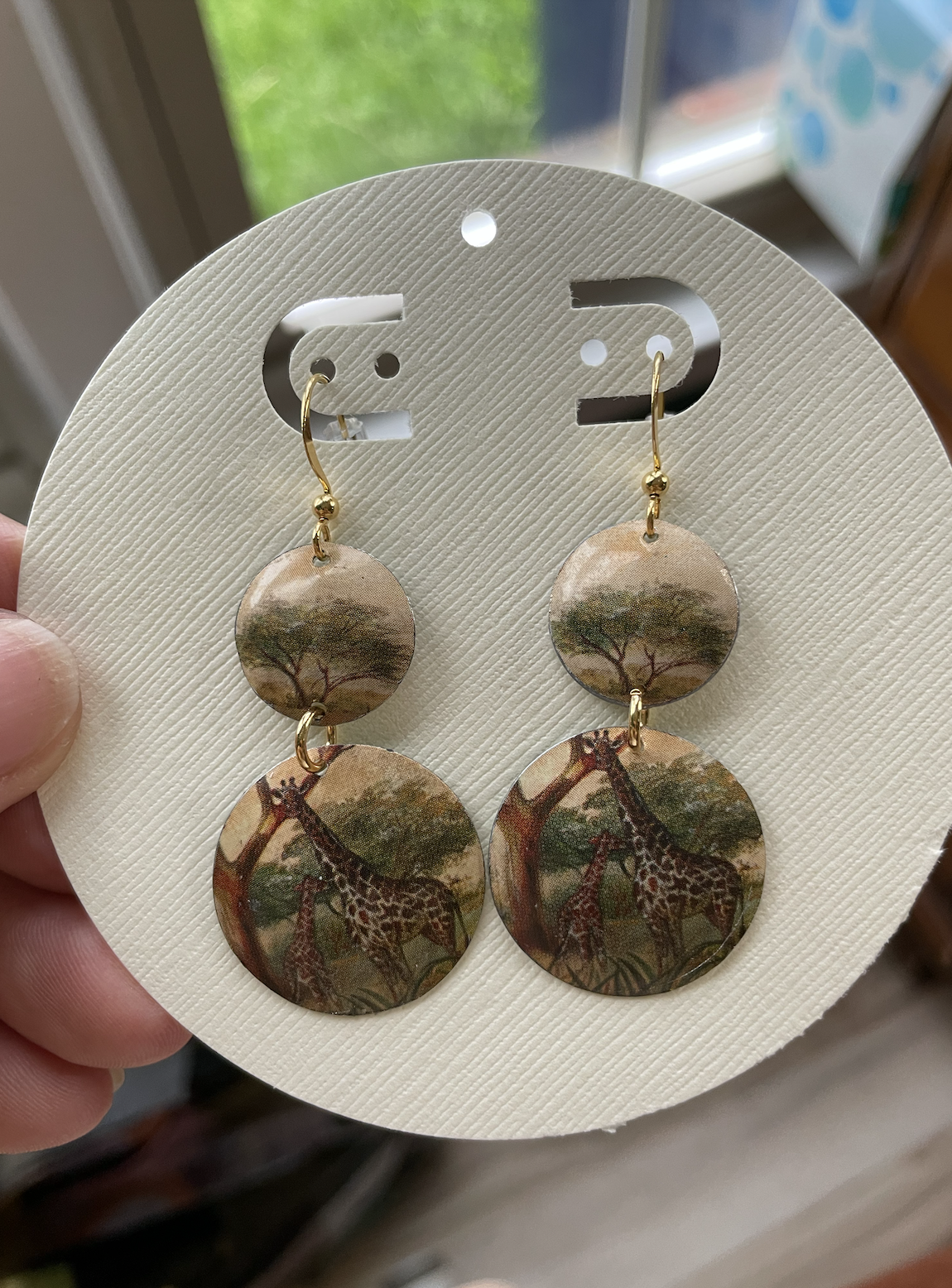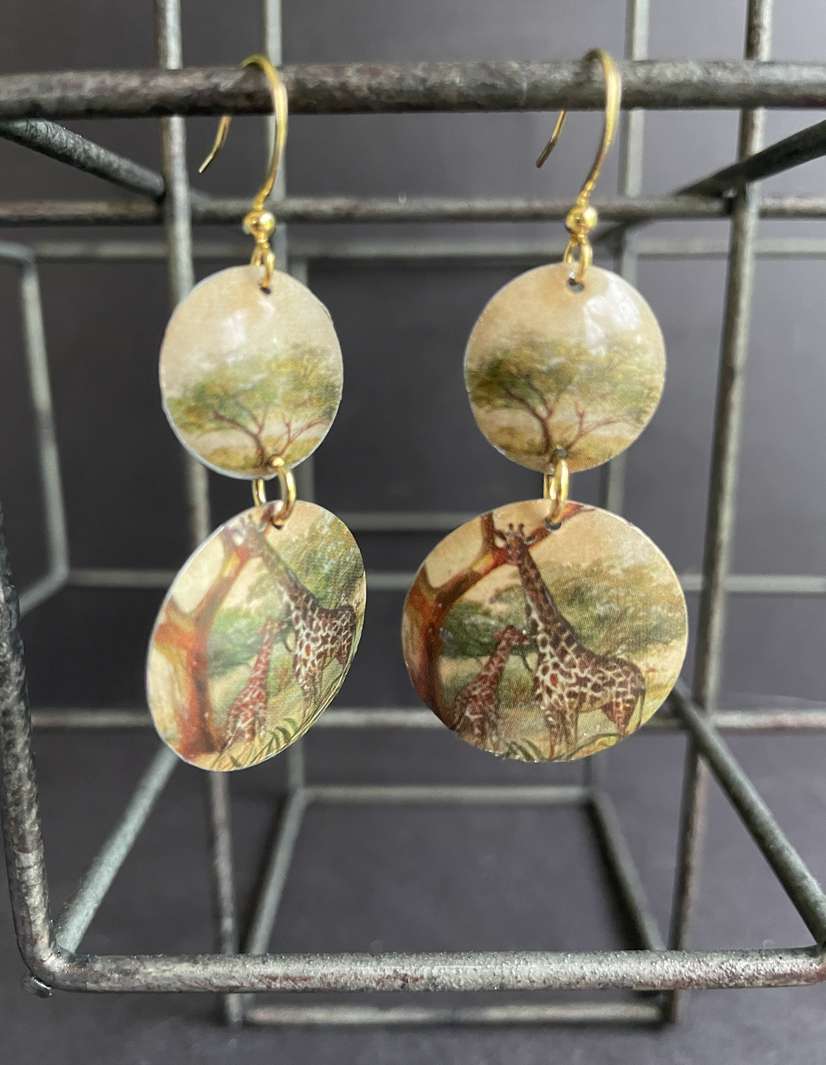 Down to earth African savannah and lovely giraffes. These silver plated earrings come with a rubber stopper so they won't fall out of your ears.