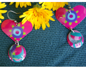 Pink Hearts Tin Earrings