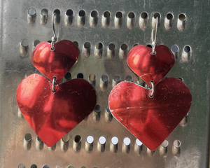 Shiny Red Hearts Tin Earrings