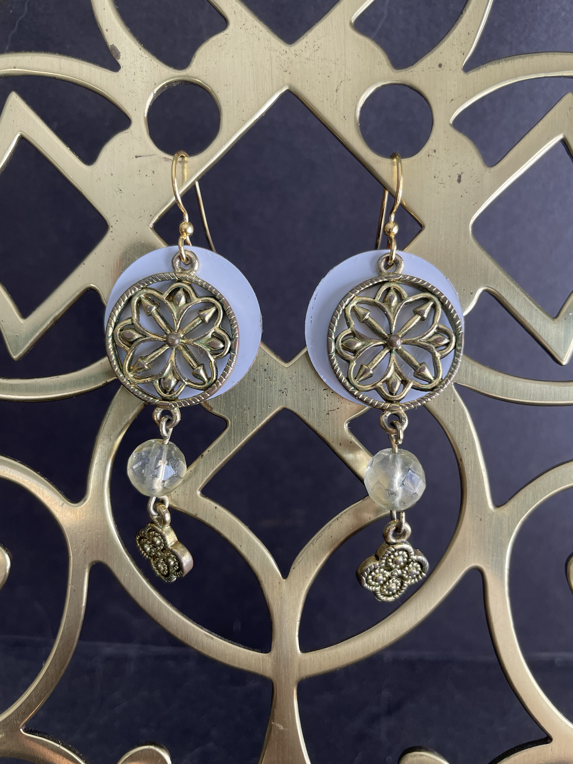 Lilac Backed Medallion Tin Earring