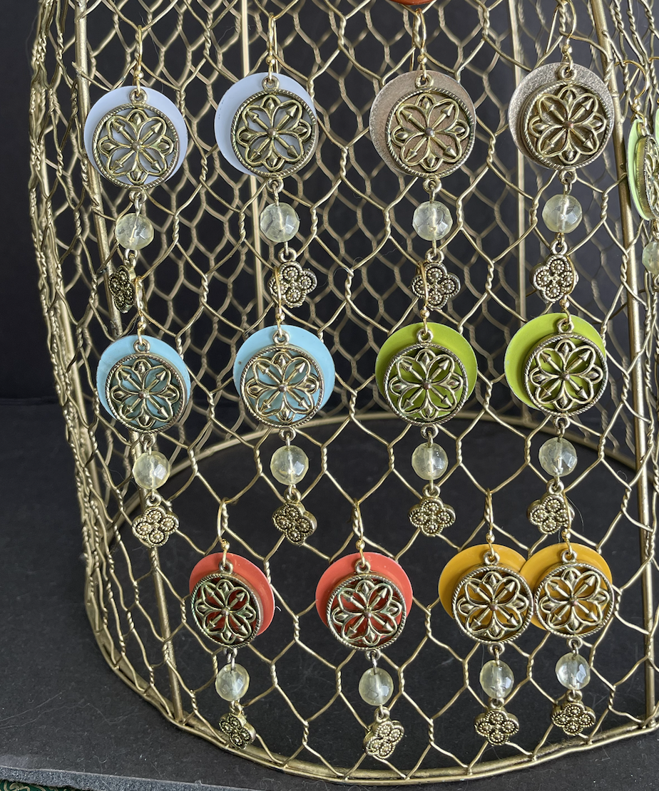 • Care Instructions: As with any jewelry, the easier you treat it, the longer it will last. The double-sided pendants are not water proof. The tin earrings are water proof, although some of the older tins may rust as they have a higher iron content (I think this patina only adds to their charm).