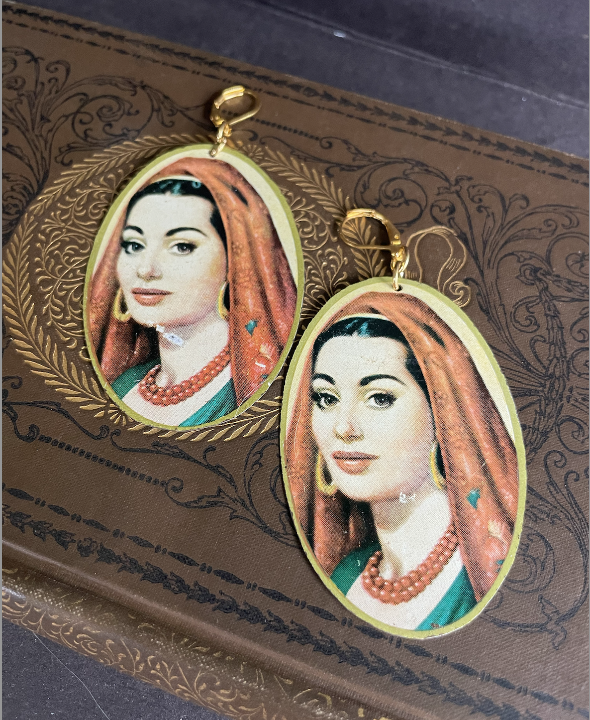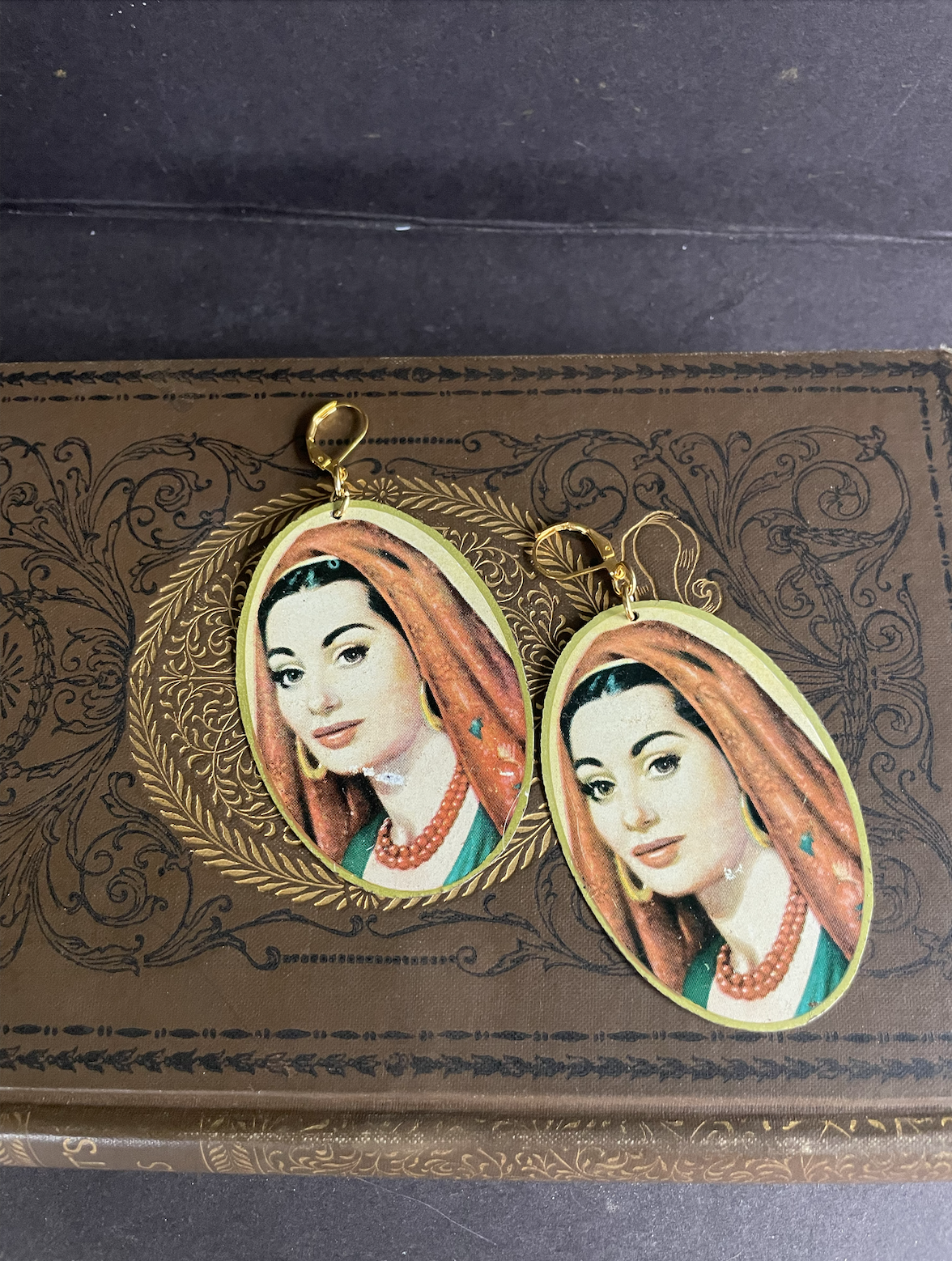 An old tin of cigars called "Muriel Senators" had this lovely visage, whom I could not leave on the shelf. The earring findings are gold plate.