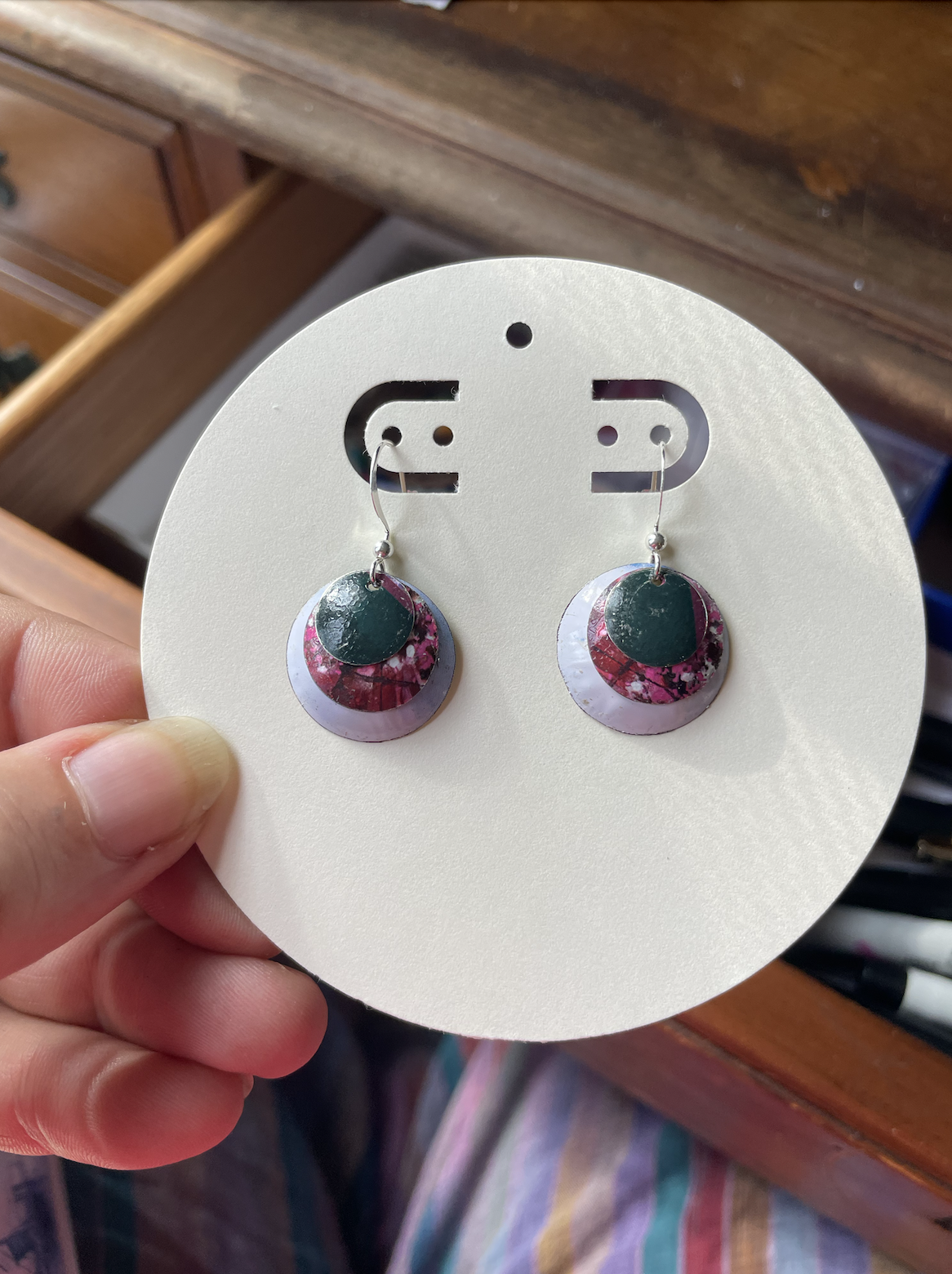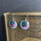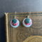 This popcorn tin showcased a quaint cafe and flower market scene in Paris. So quaint I named this collection "Gay Paris" (pronounced 'paree'). I love how the close-ups of so many of these bits create colorful abstract earrings, like these nested cuties. These silver plated earrings come with a rubber stopper so they won't fall out of your ears.