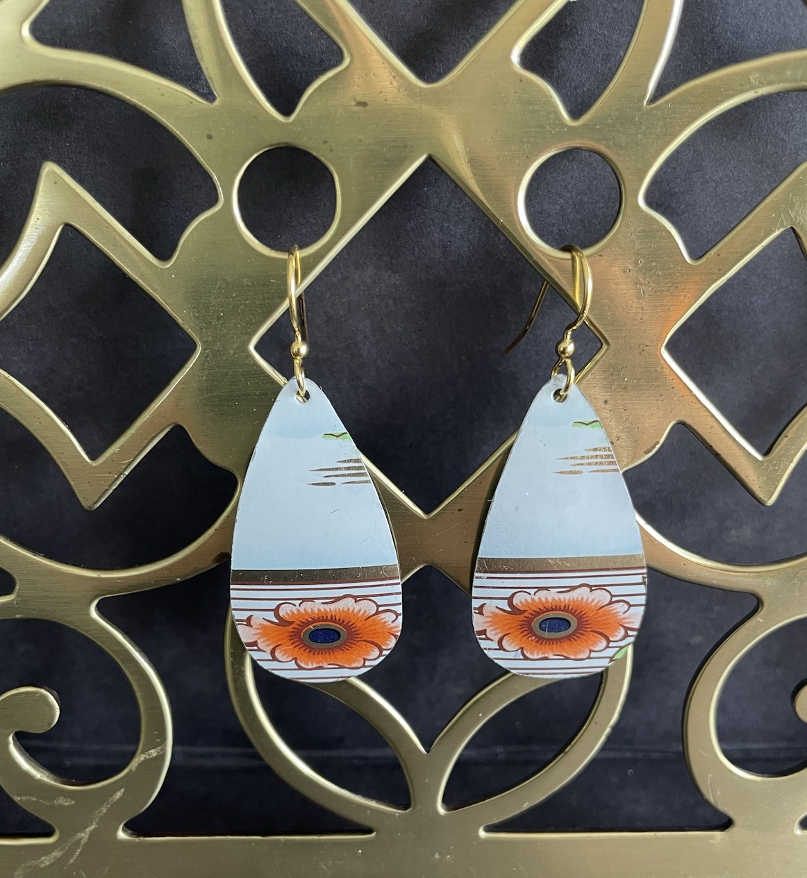 • Care Instructions: As with any jewelry, the easier you treat it, the longer it will last. The double-sided pendants are not water proof. The tin earrings are water proof, although some of the older tins may rust as they have a higher iron content (I think this patina only adds to their charm).