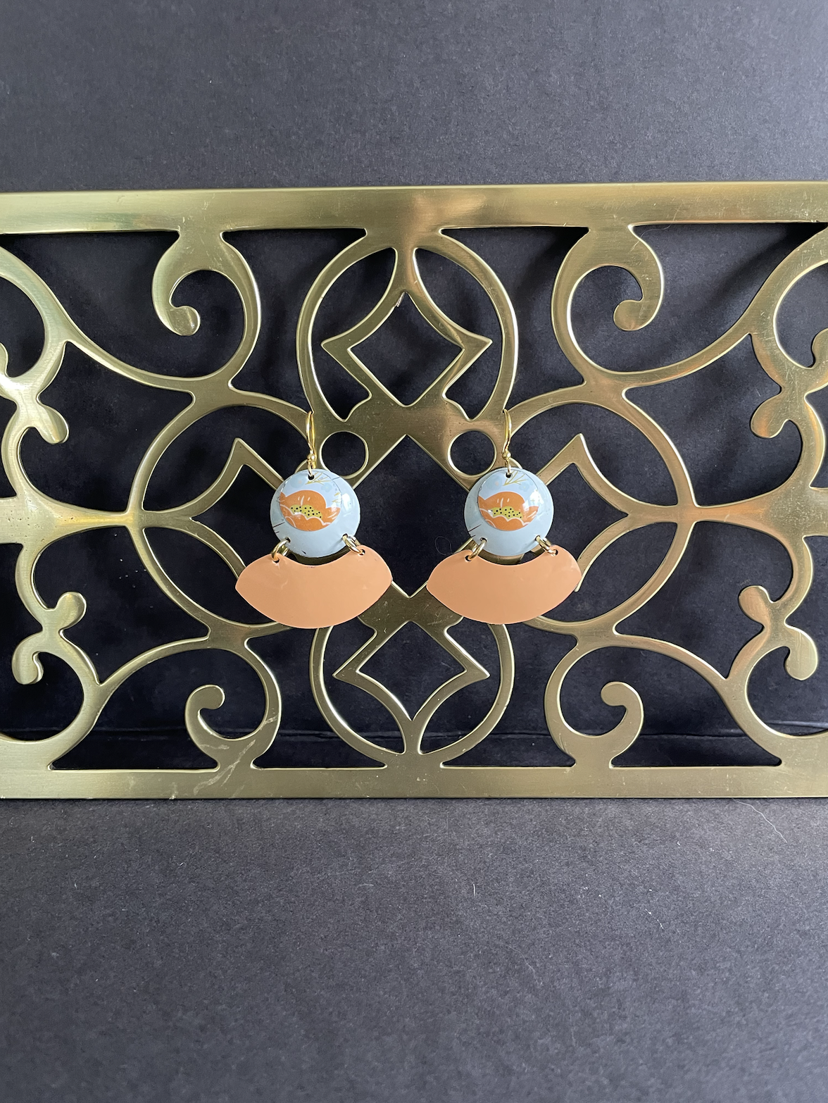 • Care Instructions: As with any jewelry, the easier you treat it, the longer it will last. The double-sided pendants are not water proof. The tin earrings are water proof, although some of the older tins may rust as they have a higher iron content (I think this patina only adds to their charm).