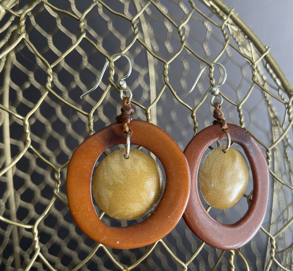 Sometimes you gotta take a tagua nut earring and make it prettier with a dome of yellow tin.