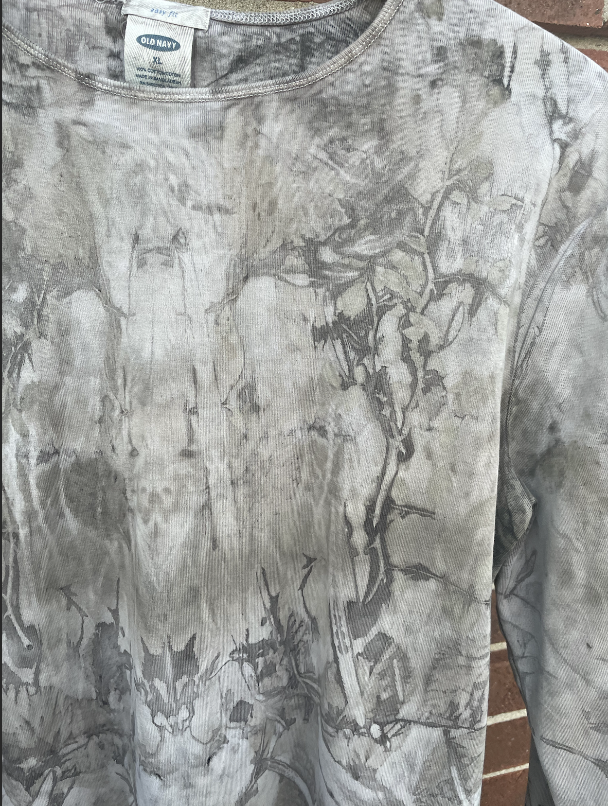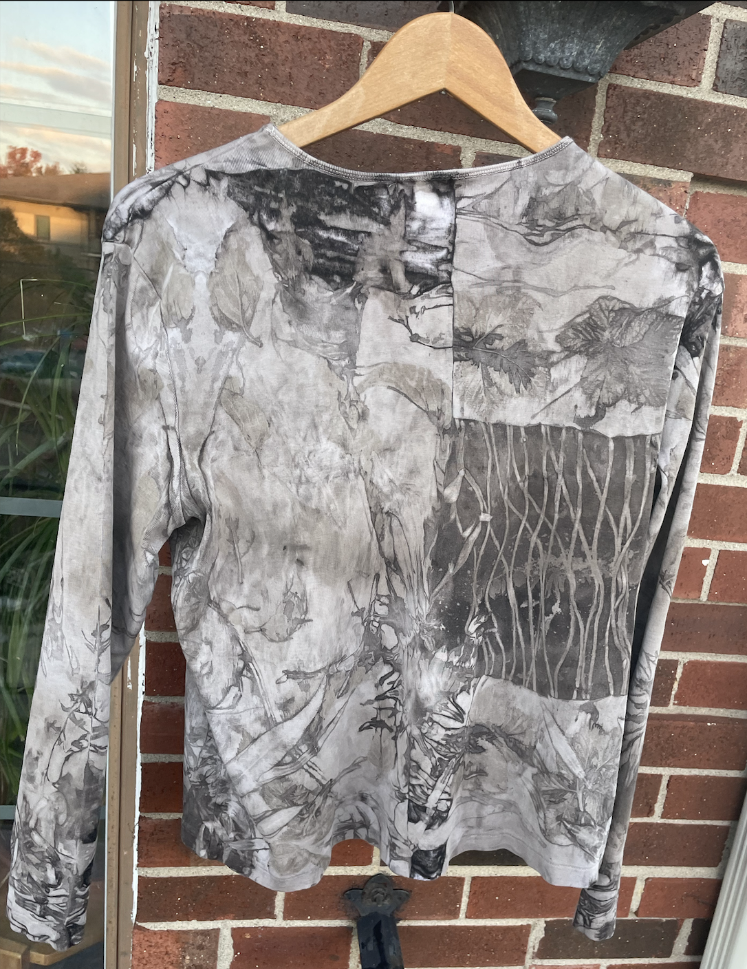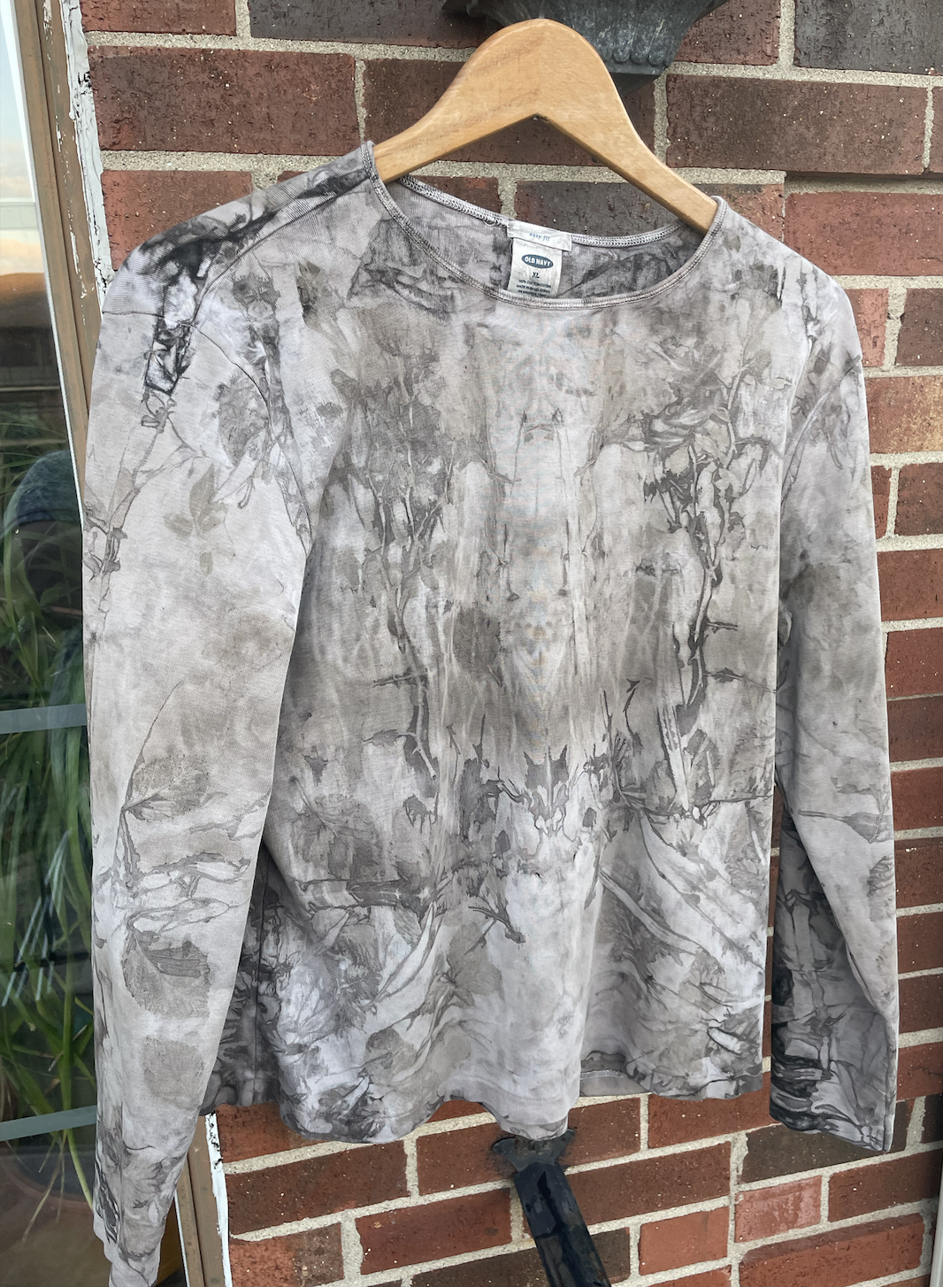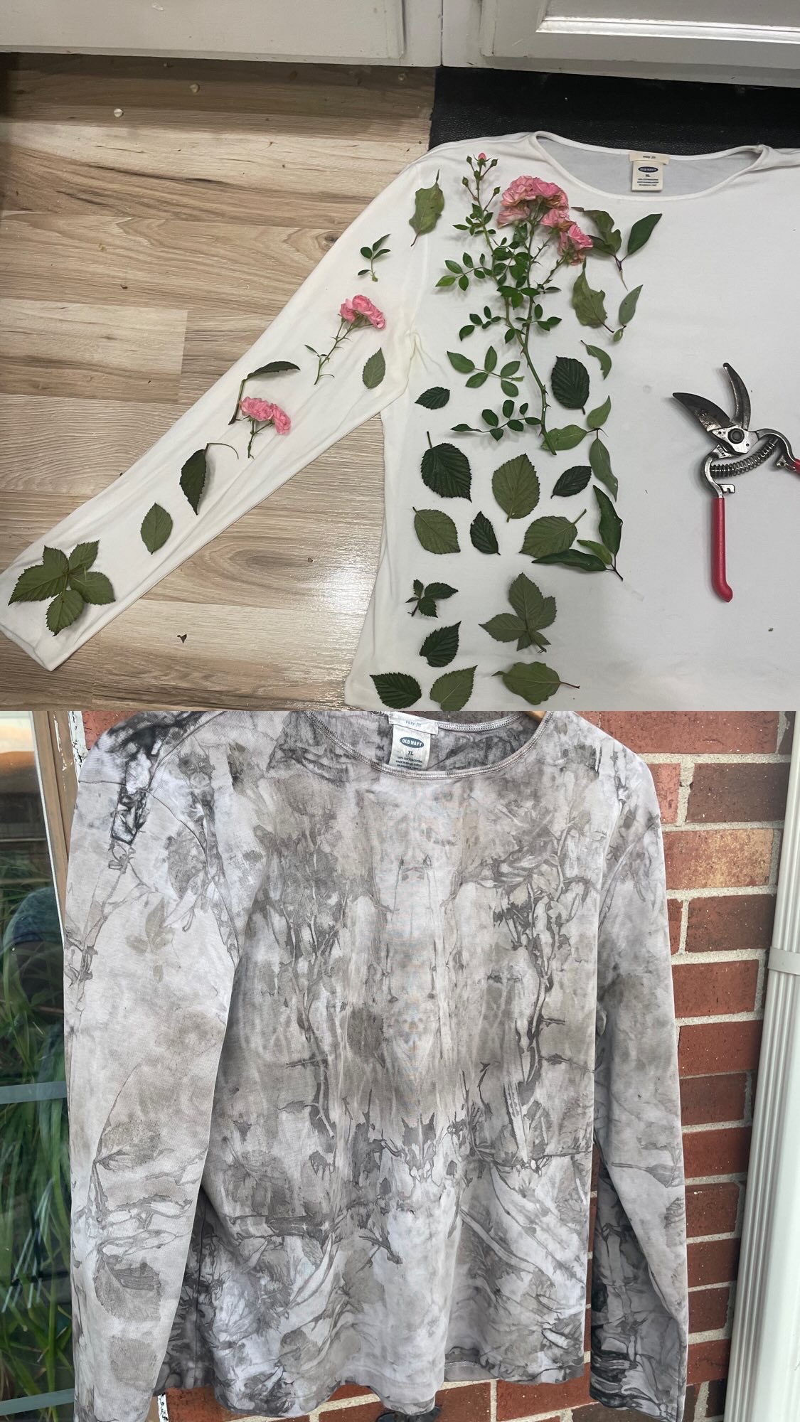 Eco-printing is a process of pressing the entire dye plant against the fabric and transferring the color while the plant stays flat, without the use of chemical mordants.