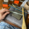 Knitting needle + hammer + lettering stamps.